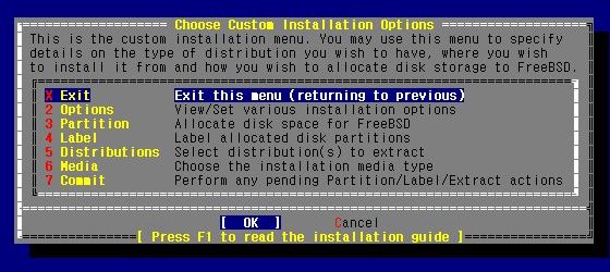 ここまでのプロセスはまだ引き返すことができる,FreeBSDのインストールプロセスはPCのHDDに何も作用はしていない. だから distribution を選び直すことも可能であるし,labelの構成を見直すことができる.が, "7" の commit を選択すると後戻りは相当困難なものとなる.(可能といえば可能であるが)すなわち,HDDはFreeBSD用に切り分けされ, 必要なファイルの転送が始まる.